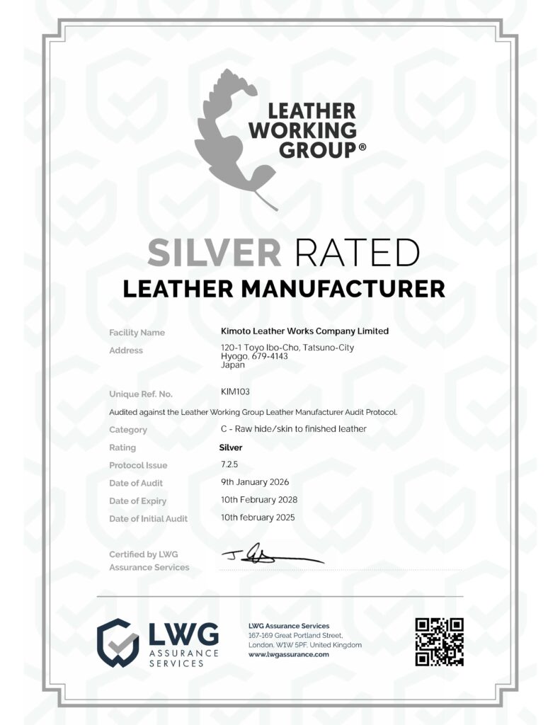 「No Leather 、No Life 」、私たちが標榜するレザーには三つのキーワードがありました。「製造への拘り」、「教育への拘り」、「革への拘り」。そしてこの度、四つ目の「拘り」を見つける事が出来ました。其れが「環境への拘り」です。「LWG」認証取得(シルバー・グレード)によって生まれる新しい革作りに対する価値観がこの度の様々な挑戦によって得ることができました。